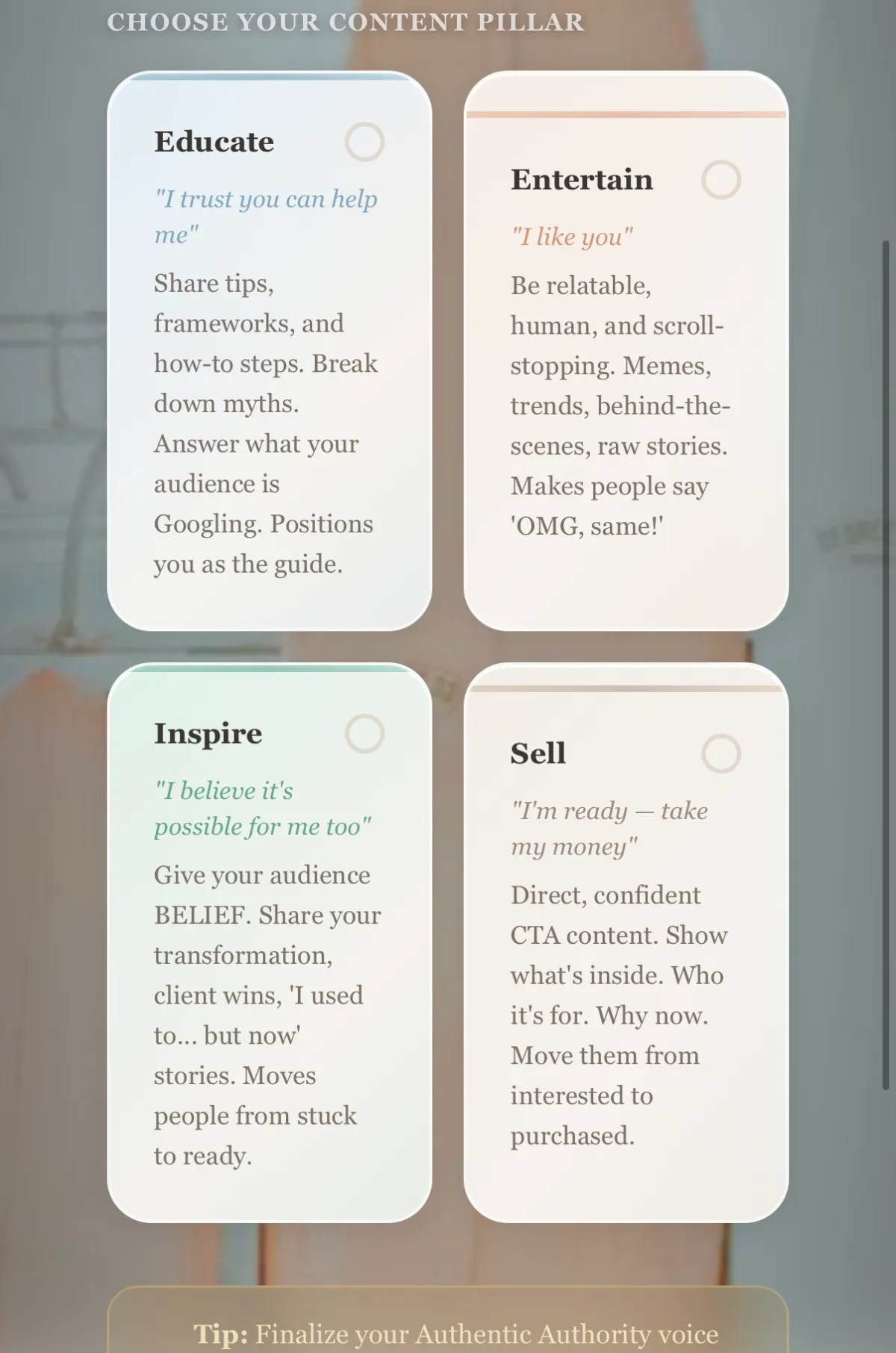 When you start in this space for a true beginner, you start learning about content pillars and your niche, and strategy to scale your business. This tool does it all in the most simplistic fashion.